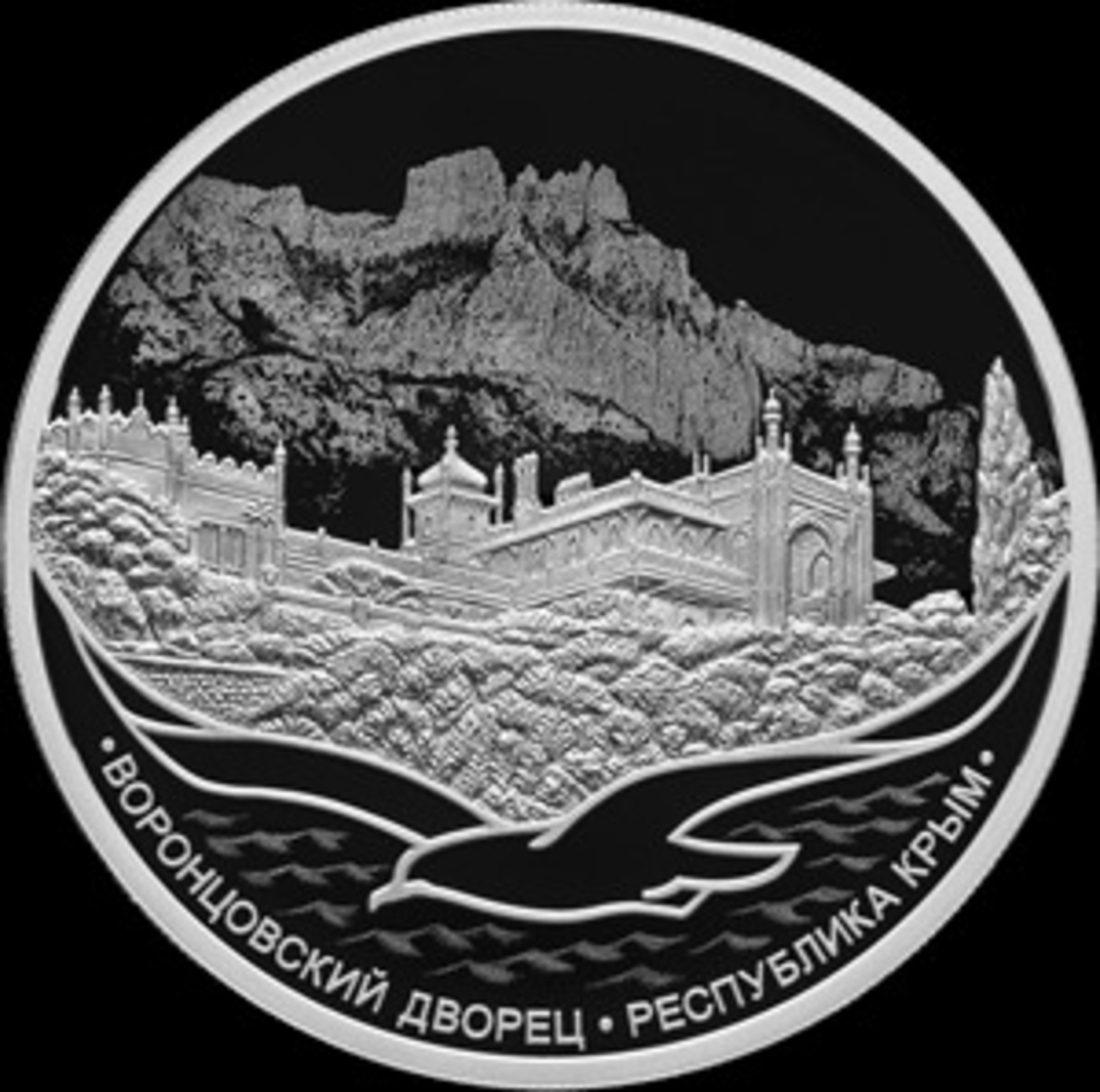 Банк России выпустил памятную монету «Воронцовский дворец» серии «Памятники архитектуры». Монета номиналом 3 рубля изготовлена качеством «пруф» из серебра 925 пробы массой драгоценного металла 31,1 г. Диаметр круга 39 мм. Тираж монеты 3 тыс. штук.