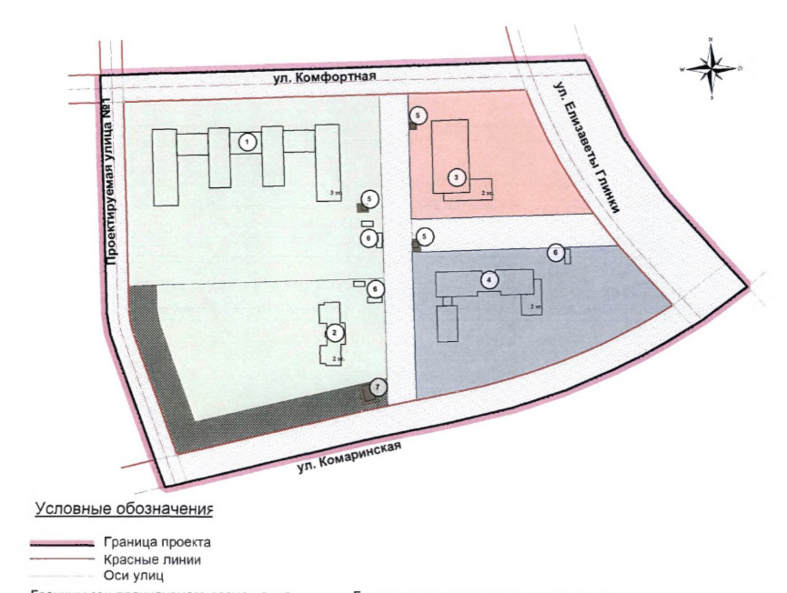 По улице Комфортная появится детский сад на 350 мест и физкультурно-оздоровительный комплекс. В центральной, северо-восточной и юго-восточной части квартала запланированы трансформаторные подстанции и мини-котельные.