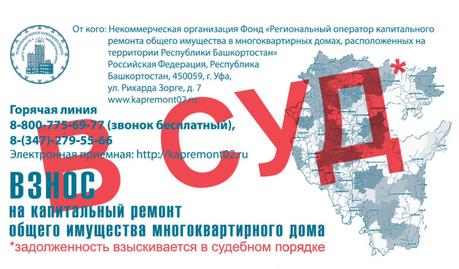 Региональный оператор и Управление Федеральной службы судебных приставов по Республике Башкортостан совместно ведут активную работу по принудительному взысканию задолженности по оплате взносов на капитальный ремонт.