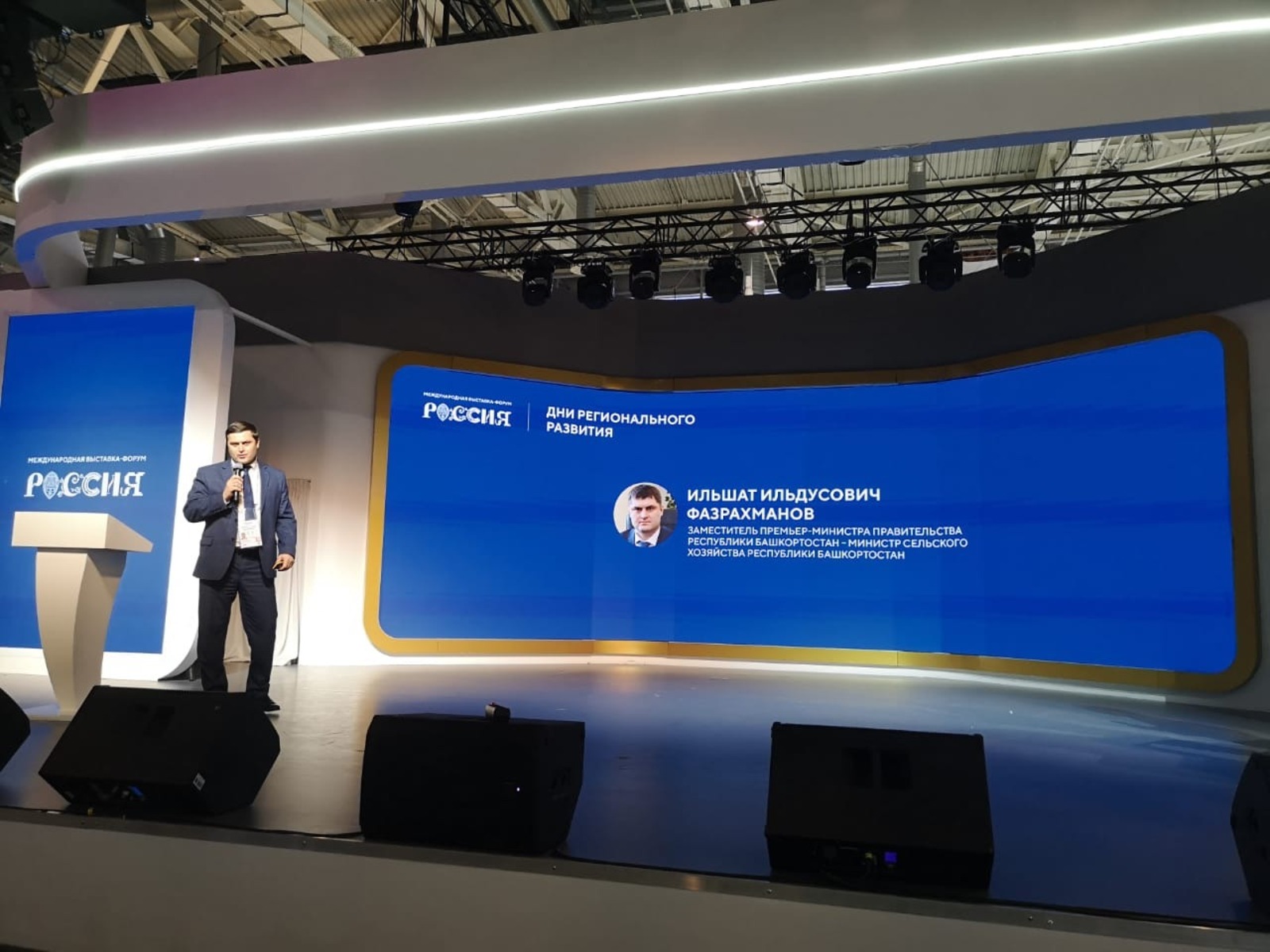 Сегодня, 15 июня, на ВДНХ состоялась сессия-презентация «Пространство будущего»: Волго-Уральский макрорегион». В мероприятии принял участие заместитель премьер-министра правительства РБ – министр сельского хозяйства Ильшат Фазрахманов. Он презентовал стратегию развития агропромышленного комплекса Башкортостана до 2030 года.