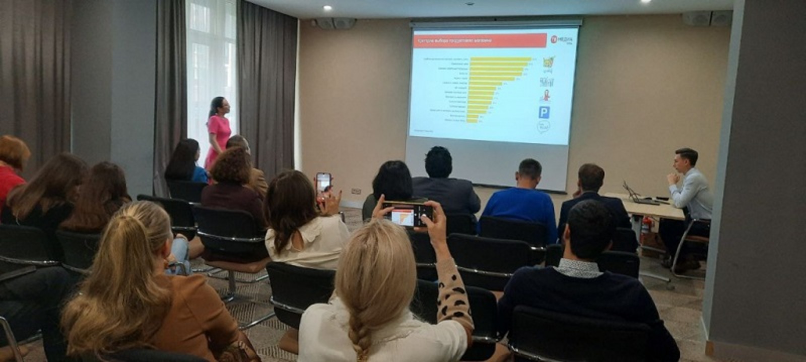 Участники встречи провели анализ предпочтений потребителей в продуктах питания, выявили ключевые критерии выбора покупателями продуктовых магазинов, узнали об особенностях интереса к онлайн и офлайн продажам, оценили покупательскую способность клиентов при планировании рекламной кампании. В процессе обучения обсуждались действенные приемы в рекламных роликах для максимального привлечения потенциальных потребителей, обращалось внимание на акценты, которые стоит учесть при подготовке рекламного контента, проанализированы рейтинги телевизионных каналов и их целевые аудитории.