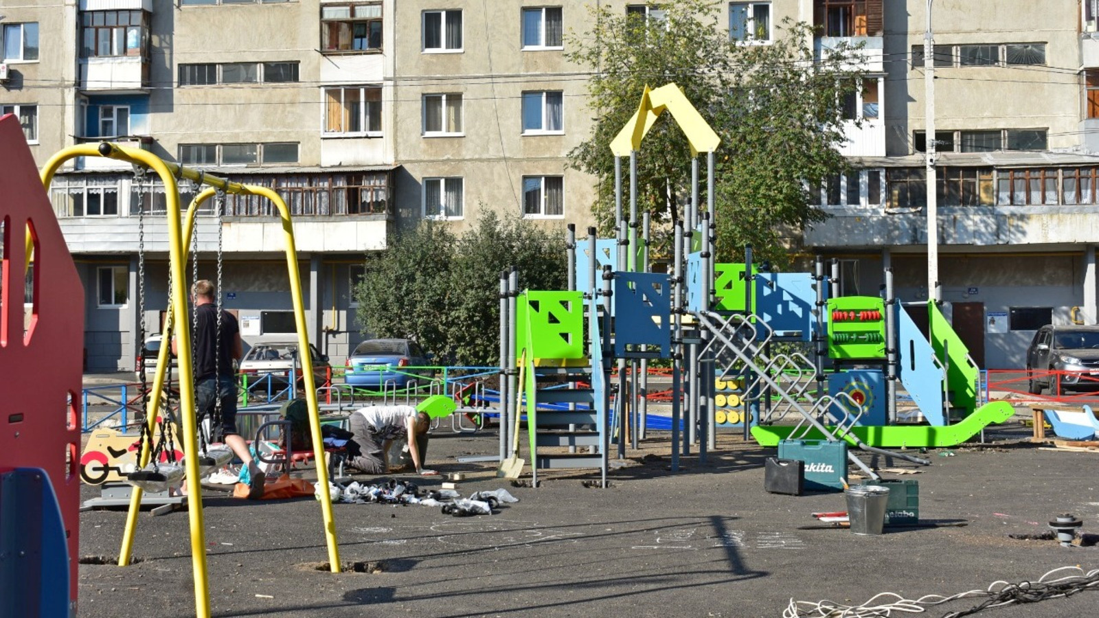 Укладка асфальтового покрытия на проезжих частях и тротуарах практически завершена. Средний процент монтажа детского спортивного игрового оборудования на оставшихся 13 дворовых территориях составляет 52%.