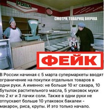 В некоторых телеграм-каналах появилась информация о том, что якобы из-за нехватки продуктов вводятся ограничения на покупку товаров в одни руки.На самом деле продуктов и товаров первой необходимости в крупных торговых сетях хватит на всех, сообщает портал войнасфейками.рф. Ограничительные меры принимаются для борьбы со спекулянтами: в некоторых регионах предприимчивые граждане уже начали скупать продукты, на которые установлена минимальная наценка. Не для личного потребления: речь идет о тоннах сахара и круп, которые потом перепродадут с накруткой. Чтобы бороться с перекупщиками, российские торговые сети попросили власти разрешить им при необходимости ограничивать объем продажи "в одни руки" социально значимых товаров. Минпромторг России предоставил им такую возможность. Конкретные товары и параметры сети определят самостоятельно.