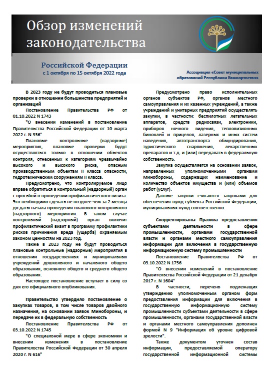 Обзор изменений законодательства Российской Федерации за период с 1 по 15 октября 2022 года [469 Kb]