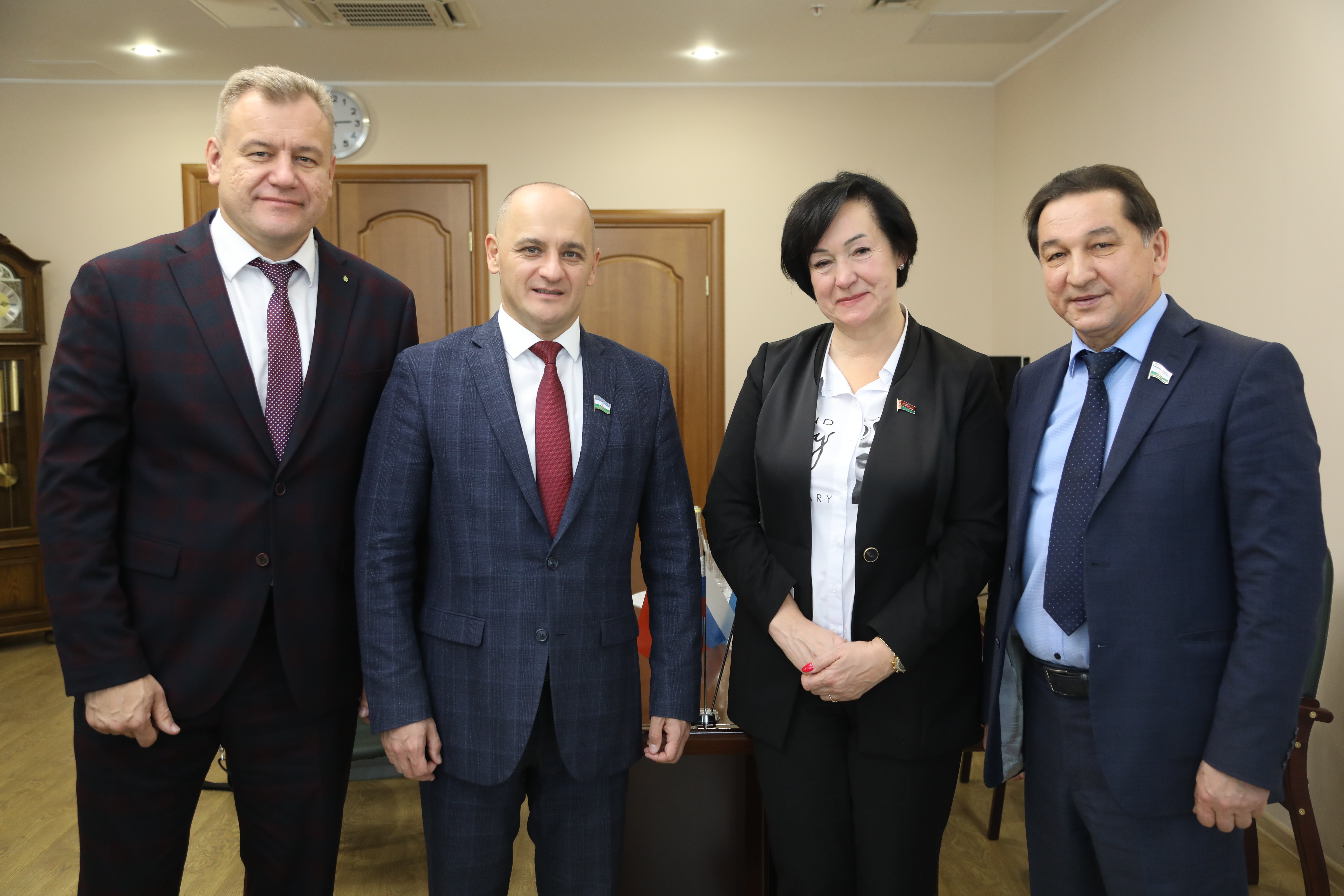 Заместитель Председателя Государственного Собрания – Курултая Республики Башкортостан Рустам Ишмухаметов и председатель комитета по промышленности, инновационному развитию, торговле, предпринимательству и туризму Халил Рахимов провели встречу с парламентариями Гомельского областного совета депутатов, председателем постоянной комиссии по экономике, бюджету, финансам и коммунальной собственности Антониной Ежовой и депутатом Дмитрием Черняковым.