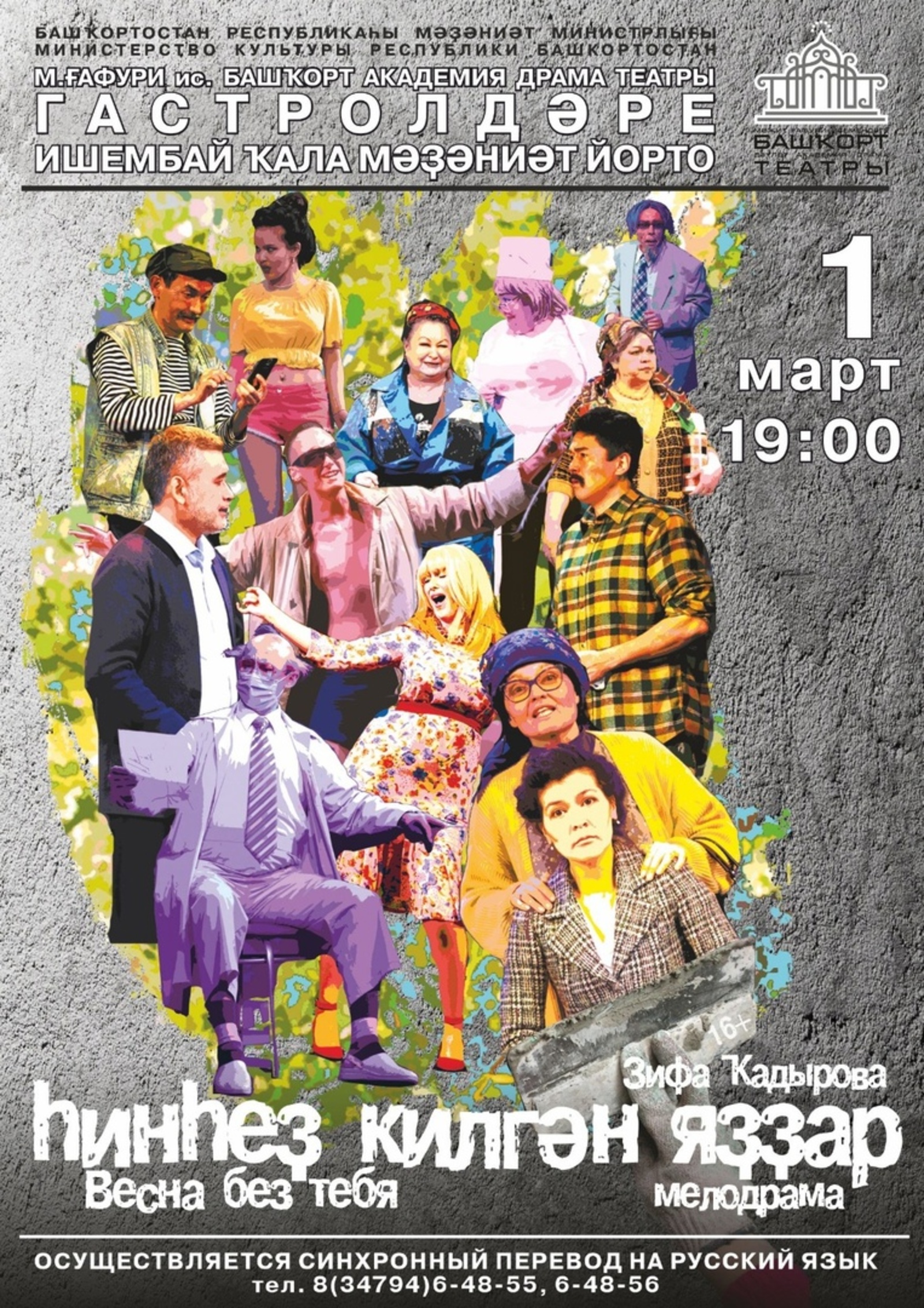 1 марта в 19:00 ч. на сцене Ишимбайского дворца культуры ПРЕМЬЕРА 102-го сезона мелодрама «ҺИНҺЕҘ КИЛГӘН ЯҘҘАР» /«ВЕСНА БЕЗ ТЕБЯ» (З.Кадырова).