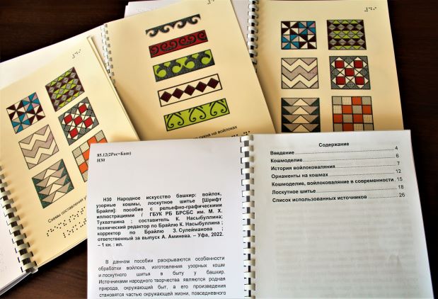 В тифлоиздательском отделе Башкирской республиканской специальной библиотеки для слепых имени Макарима Хусаиновича Тухватшина вышло в свет пособие с рельефно-графическими иллюстрациями «Народное искусство башкир: войлок, узорные кошмы, лоскутное шитье». Пособие издано рельефно-графическим шрифтом Брайля.