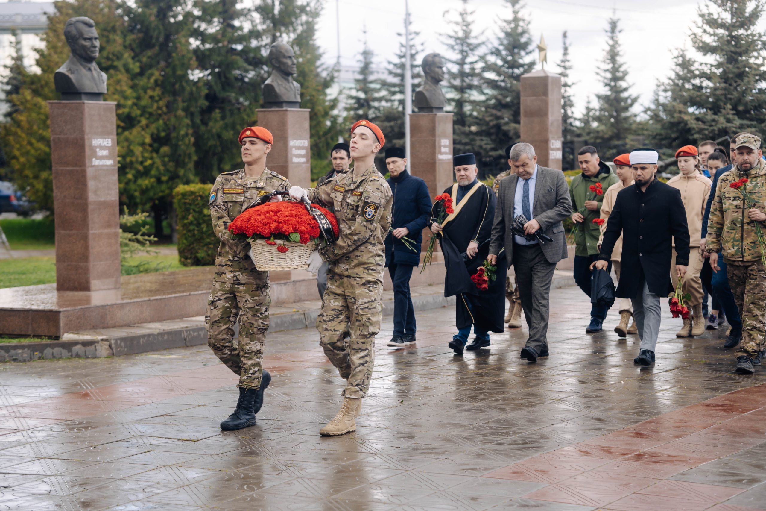 После возложения Айнур хазрат обратился к собравшимся с речью, в которой озвучил, какой должна быть гражданская позиция мусульман по отношению к Родине: