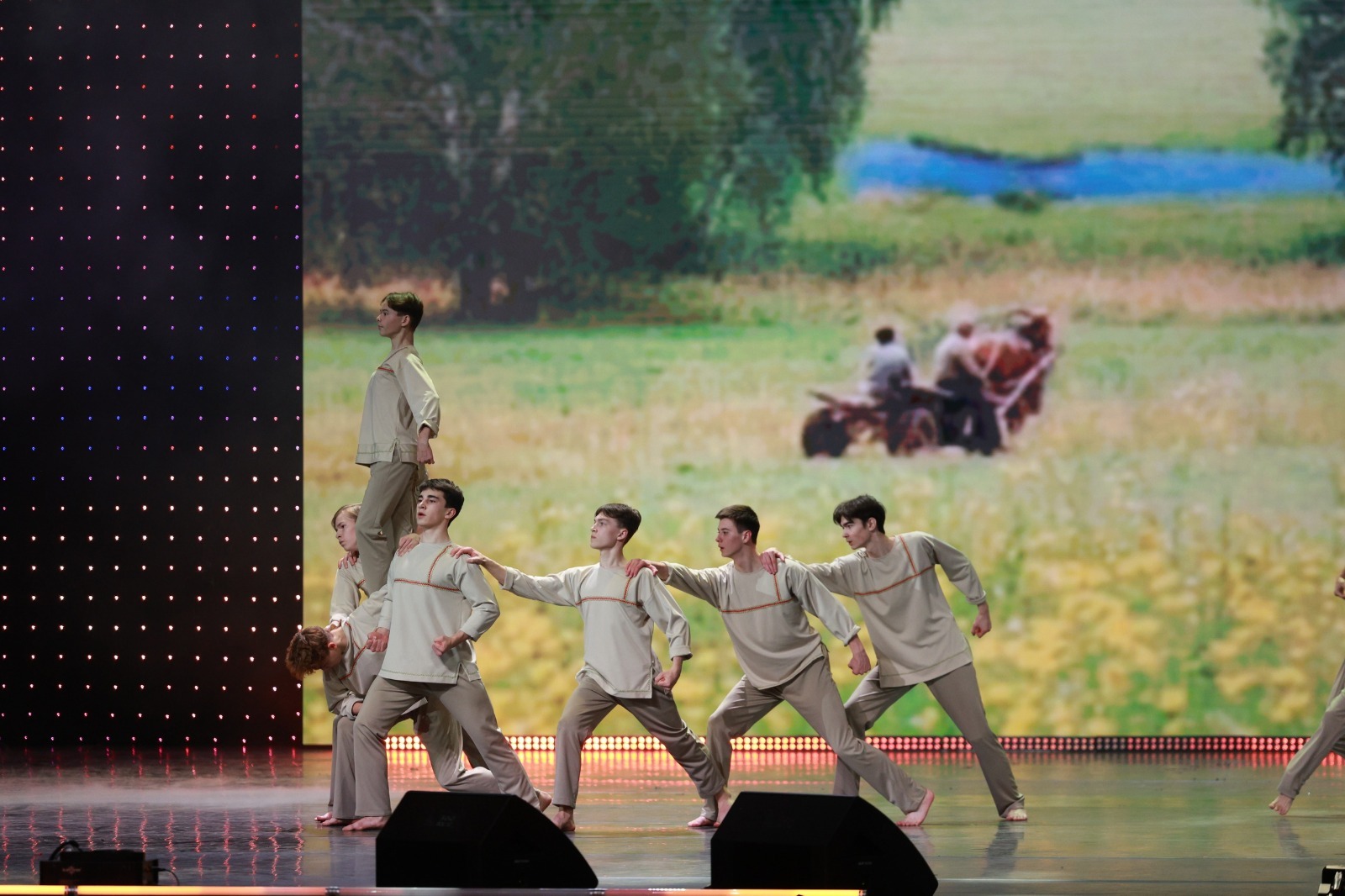 Песня Николая Емелина легла в основу яркой искромётной танцевальной композиции «Русь», которую великолепно исполнили воспитанники «Миллениума» под руководством Ларисы Шариповой и Марины Байтуллиной. Это был не просто танец, а настоящая театральная зарисовка с волнительным сюжетом, заставляющим проживать те чувства, которые ощущают сами артисты. Композиция пришлась по душе искушённой московской публике, аплодисменты долго не смолкали. А с Кремлёвской сцены им скромно улыбались наши нефтекамские парнишки.