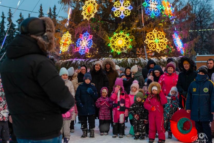 На площади Ленина были организованы флешмобы, конкурсы и танцевально-музыкальные игры. Также зрители активно проявили себя в интеллектуальной викторине «Новости из нового года», где каждый участник получив карточку, придумывал горячую новость из новогоднего выпуска. Далее состоялся небольшой концерт на зимнюю тему от солиста Городского дворца культуры Динара Файзуллина.