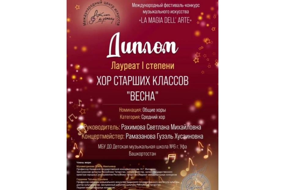 Хор детской музыкальной школы №6 «Весна» стал лауреатом «La magia dell'Arte»!