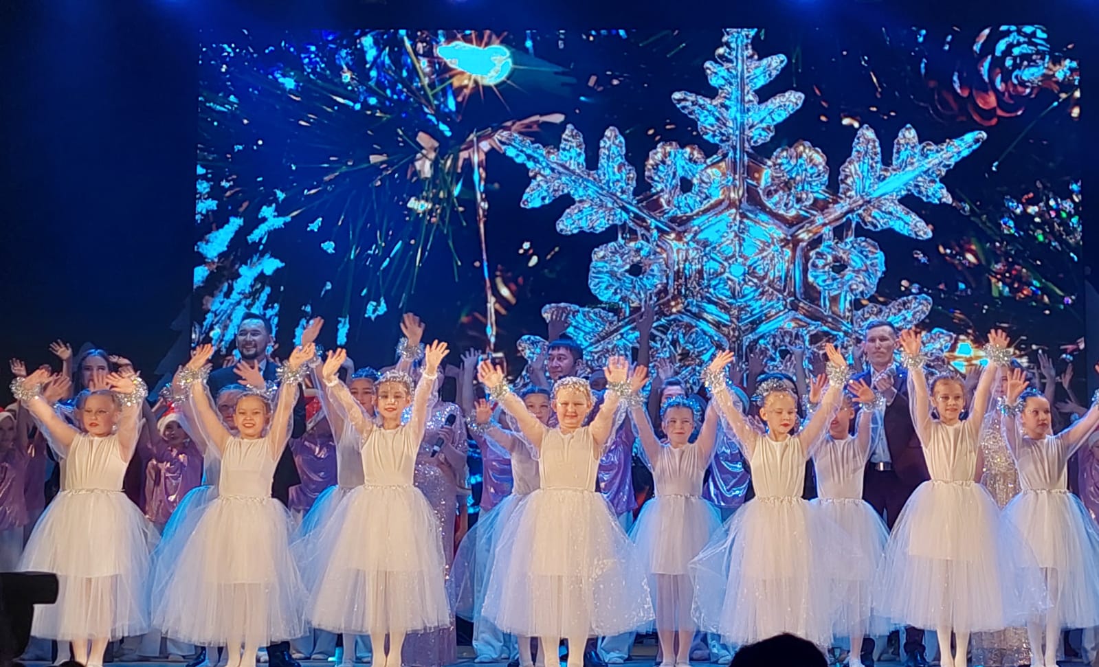Завершился концерт зажигательной песней «Новогодняя ночь» в исполнении всех участников концерта, которую подпевал уже весь зал.