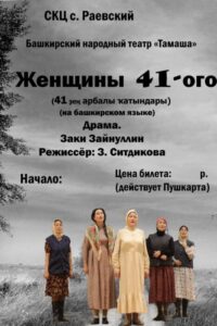Приглашаем жителей и гостей Альшеевского района на спектакль “Женщины 41-ого” башкирского народного театра “Тамаша”, который состоится 30 ноября в Социально-культурном центре с. Раевский.