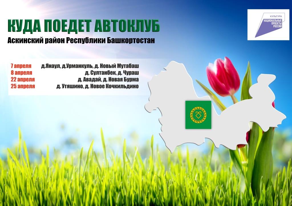 Мероприятия пройдут в 10 муниципальных образованиях республики: Аскинском, Баймакском, Дуванском, Зилаирском, Кармаскалинском, Караидельском, Нуримановском, Салаватском, Стерлитамакском, Татышлинском районах.