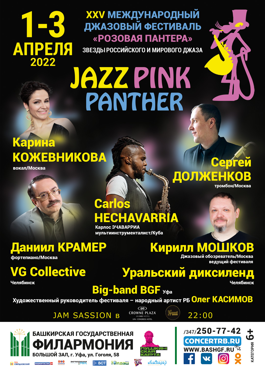 С 1 по 3 апреля 2022 года в Уфе состоится долгожданное событие – XXV Международный джазовый фестиваль «Розовая пантера».