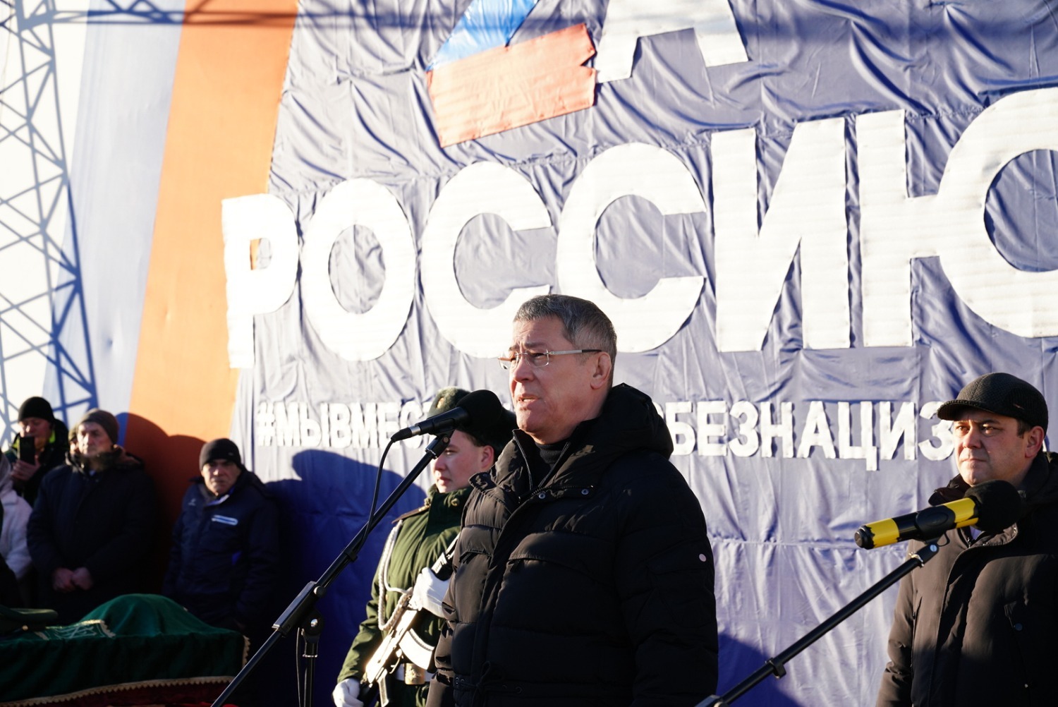 «Уважаемая Фарида Магдановна, родные и близкие и татышлинцы. С момента начала специальной военной операции тысячи наших парней и мужчин принимают в ней участие и защищают нашу страну, проявляя мужество и героизм. Фанис Хусаинов одним из первых записался в добровольцы, воевал, был ранен, воевал очень дерзко. Мы о его подвигах знаем и всегда будем помнить. К сожалению, как это бывает в тяжелых сражениях, он погиб. Уважаемая Фарида Магдановна, вы воспитали очень хорошего сына, настоящего патриота и воина. Я твердо обещаю, что мы о нем будем помнить и оставим его в наших сердцах, чтобы молодые мальчишки воспитывались на его примерах. У него был очень непростой путь, но он настоящий герой. Я прошу администрацию района принять меры по увековечению памяти Фаниса Хусаинова. Спи спокойно, герой, вечная тебе слава», — сказал Радий Хабиров.