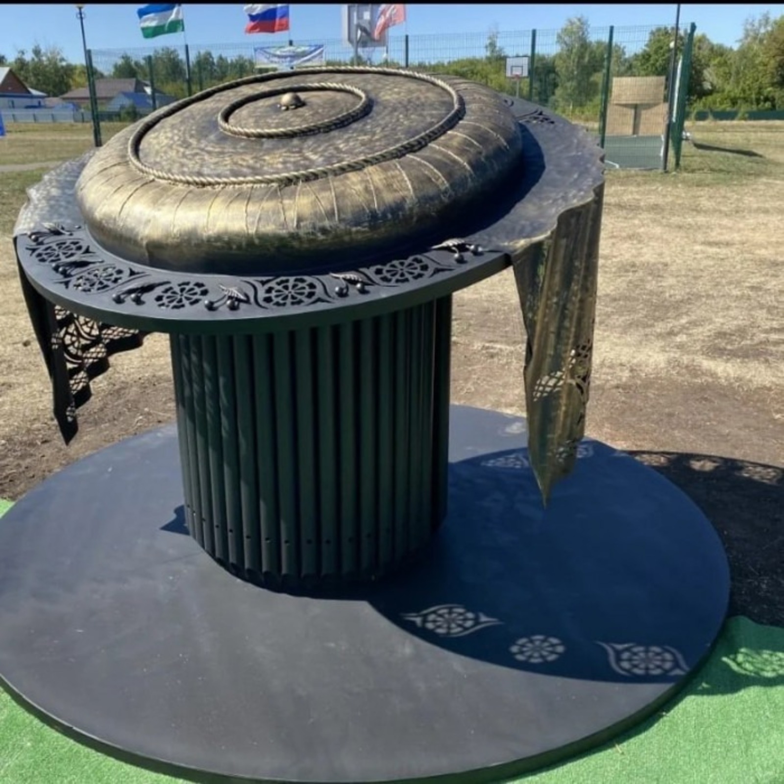 «Каждая часть арт-объекта что-то символизирует. Например, основа, на которой держится поднос, — это множество собранных воедино стеблей курая, показывает нашу историю. На символической сковородке изображены национальные орнаменты. Есть на памятнике и вишня, символизирующая наш район, у будзякцев ее очень много растет. А также есть и рушник — он показывает гостеприимство башкирской земли», - пояснил Вакиль Шайхетдинов.По данным пресс-службы Общественной палаты РБ, на параде блюд для гостей приготовили 1500 бэлешей. Самый большой из них получился весом 100 кг, размером 80 на 120 см. Он состоял из четырех частей с разными начинками. Пирог торжественно разделили и раздали участникам события.