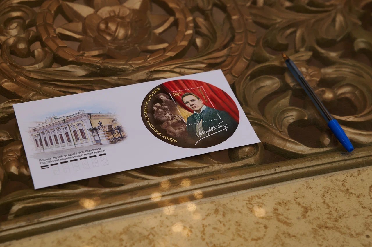 Почта России выпустила почтовый блок к юбилею Фёдора Ивановича Шаляпина. Сам блок выполнен в форме грампластинки, в середине — марка с портретом знаменитого оперного певца. На его полях — образы Мефистофеля, Бориса Годунова и Базилио, это роли, которые в разное время исполнял артист. На блоке также изображён театральный занавес и автограф певца.