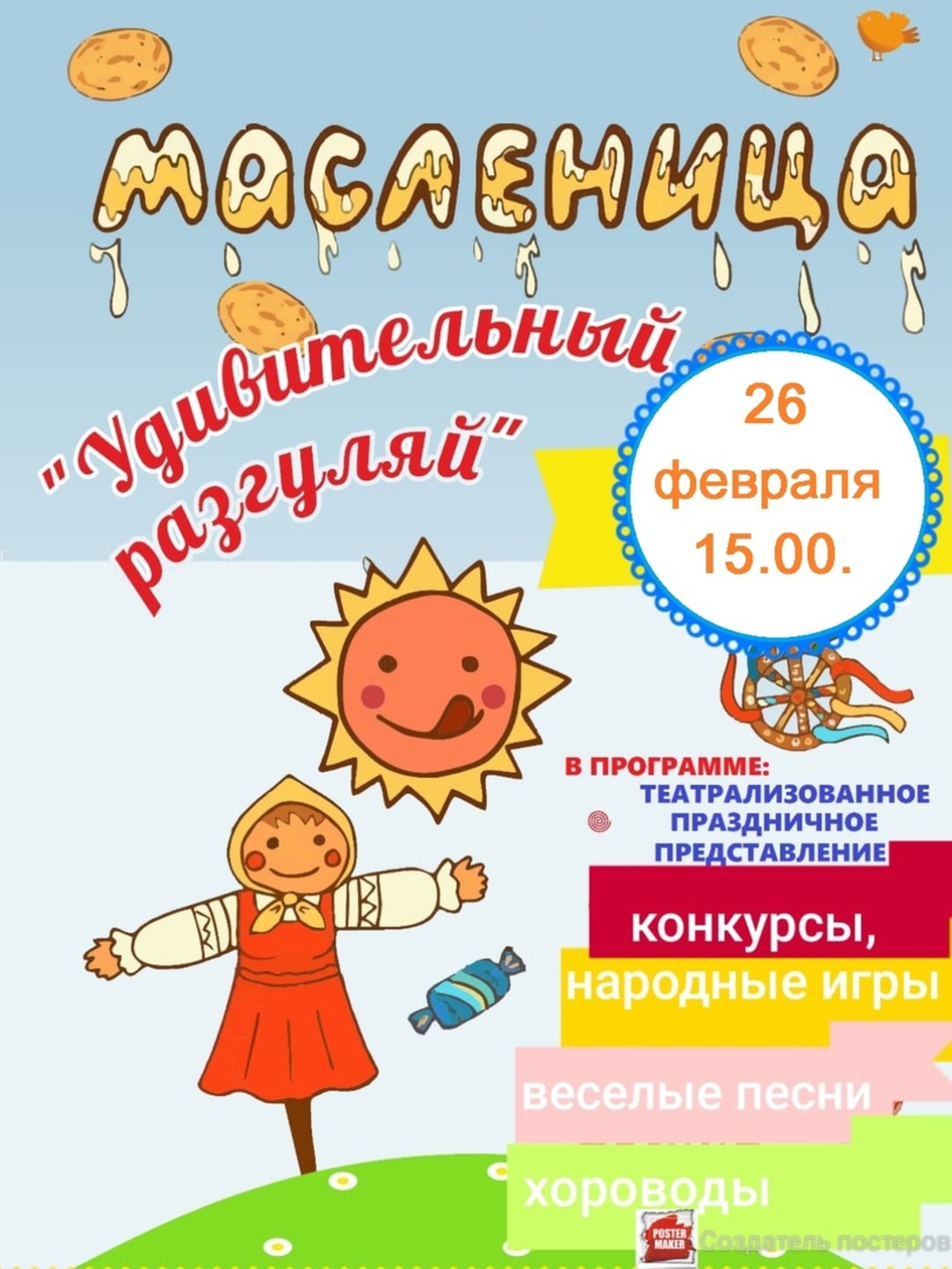 В ДК «Йондоз» 26 февраля в 15 часов состоится мероприятие «Удивительный разгуляй». В программе – театрализованное представление, конкурсы, игры, хороводы. Приглашаются жители микрорайона Старый Ишимбай и другие горожане.