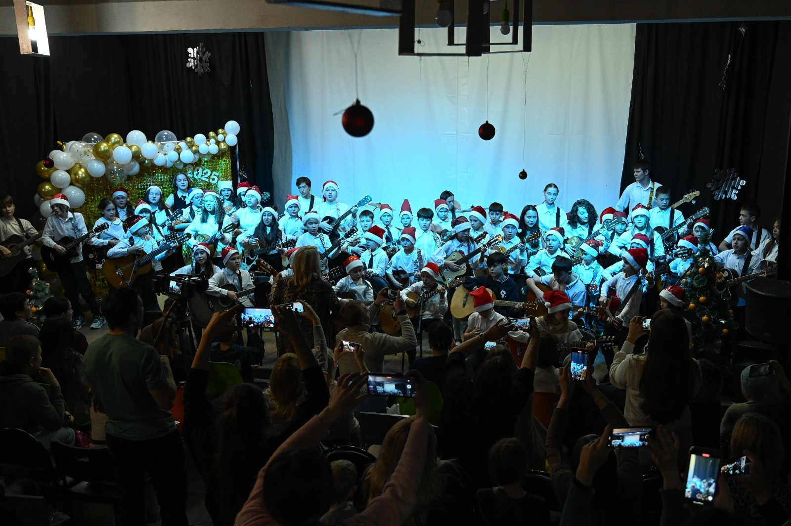Новогодние песенки «В лесу родилась ёлочка», «Три белых коня», «Новогодние игрушки» вернули зрителей в детство, все подпевали и в такт аплодировали маленьким музыкантам. Но вот на сцену выходят дети постарше, подключаются электрогитары и барабаны, атмосфера в зале накаляется! В исполнении ансамблей зазвучали песни группы «Король и Шут» – «Кукла колдуна», «Лесник». Но когда ребята запели песни Виктора Цоя – «Группа крови», «Звезда по имени Солнце» и другие, то зрители уже не могли сдержать эмоций, ведь это легендарные песни их молодости, которые вдохновляют и объединяют людей разных поколений.