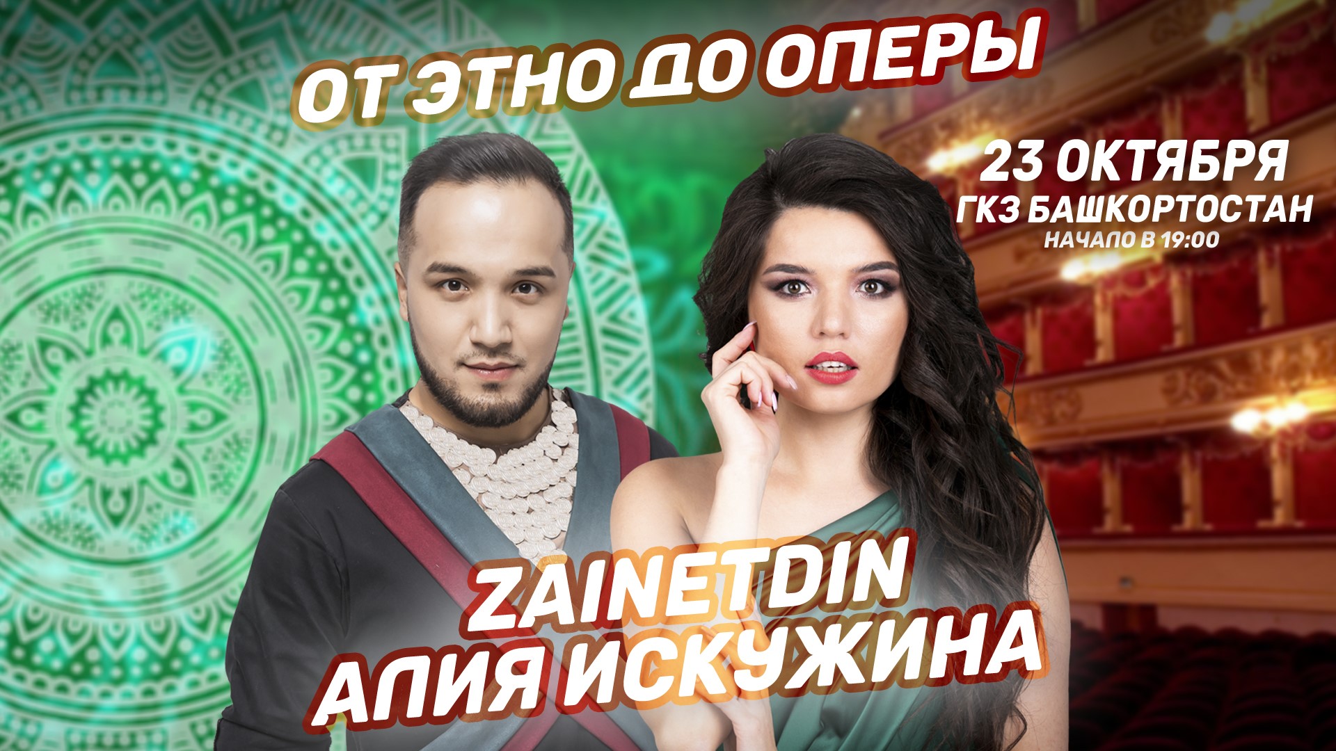 23 октября в ГКЗ «Башкортостан» пройдет совместный концерт Зайнетдина и Алии Искужиной. Это будет новая шоу-программа, где впервые на одной сцене соединятся опера и этно.