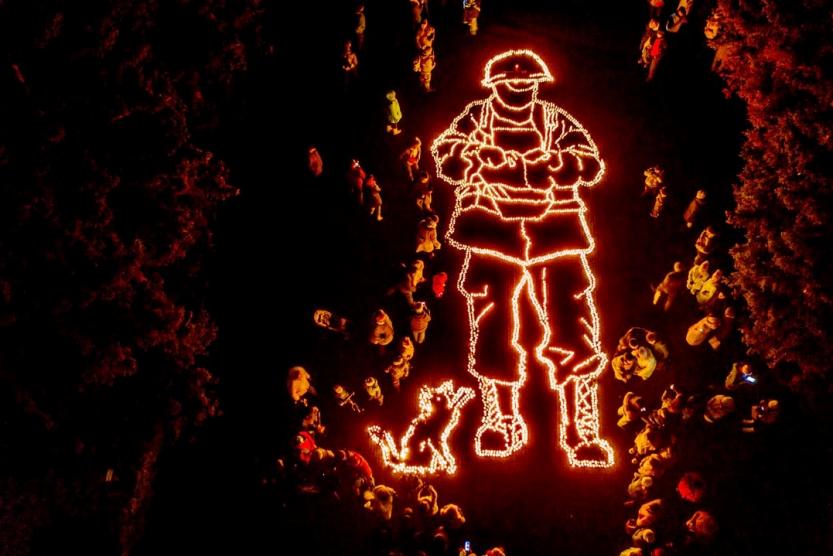 В акции приняли участие порядка трехсот молодогвардейцев Регионального отделения Всероссийской общественной организации «Молодая Гвардия Единой России», представителей общественных и ветеранских организаций. Почтив память погибших минутой молчания, они выложили из зажженных свечей фигуру российского военнослужащего.
