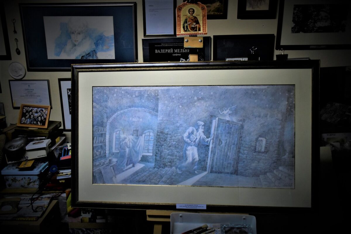 Для Игната я создал картину «Стук в дверь». В центральной части – мастер, который открывает дверь и видит ангела, слева – подмастерье. А с краю, на лестнице, уходящая фигура. Эта картина находилась в художественном музее имени Михаила Нестерова, участвовала в одноименном конкурсе. Я получил высокие отзывы от учеников и профессионалов о своей графической работе. Для меня это самая высокая оценка. Мне было важно показать, что такие темы имеют право на существование.