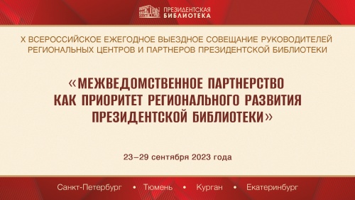 23 сентября 2023 года в рамках Ежегодного интеграционного форума стартовало Х Всероссийское ежегодное выездное совещание руководителей региональных центров и партнёров Президентской библиотеки. Впервые совещание проходит в новом формате: в течение 7 дней руководители региональных центров будут встречаться на разных площадках на территории сразу трех субъектов Уральского федерального округа (Тюменской, Курганской, Свердловской областей), всего запланировано посещение 15 площадок.