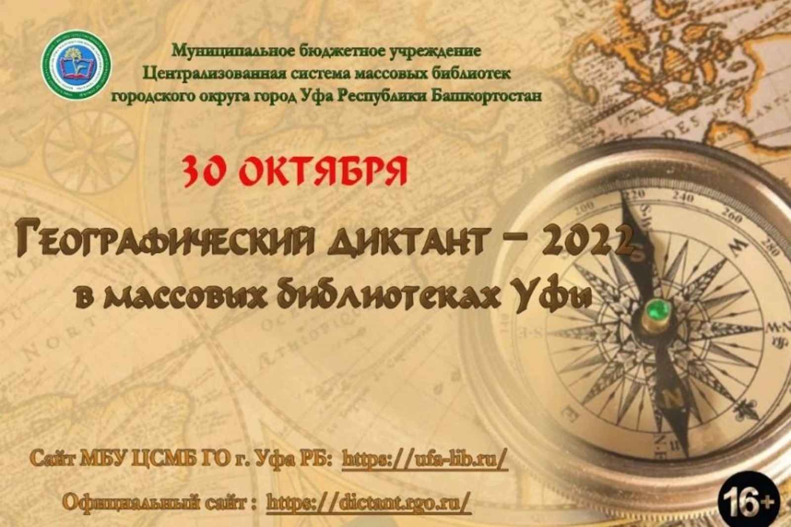 Башкирская столица присоединится к проведению международной просветительской акции «Географический диктант – 2022», которая состоится 30 октября. Участвовать в масштабной акции приглашает городская Централизованная система массовых библиотек, сообщили в пресс-службе столичной мэрии.