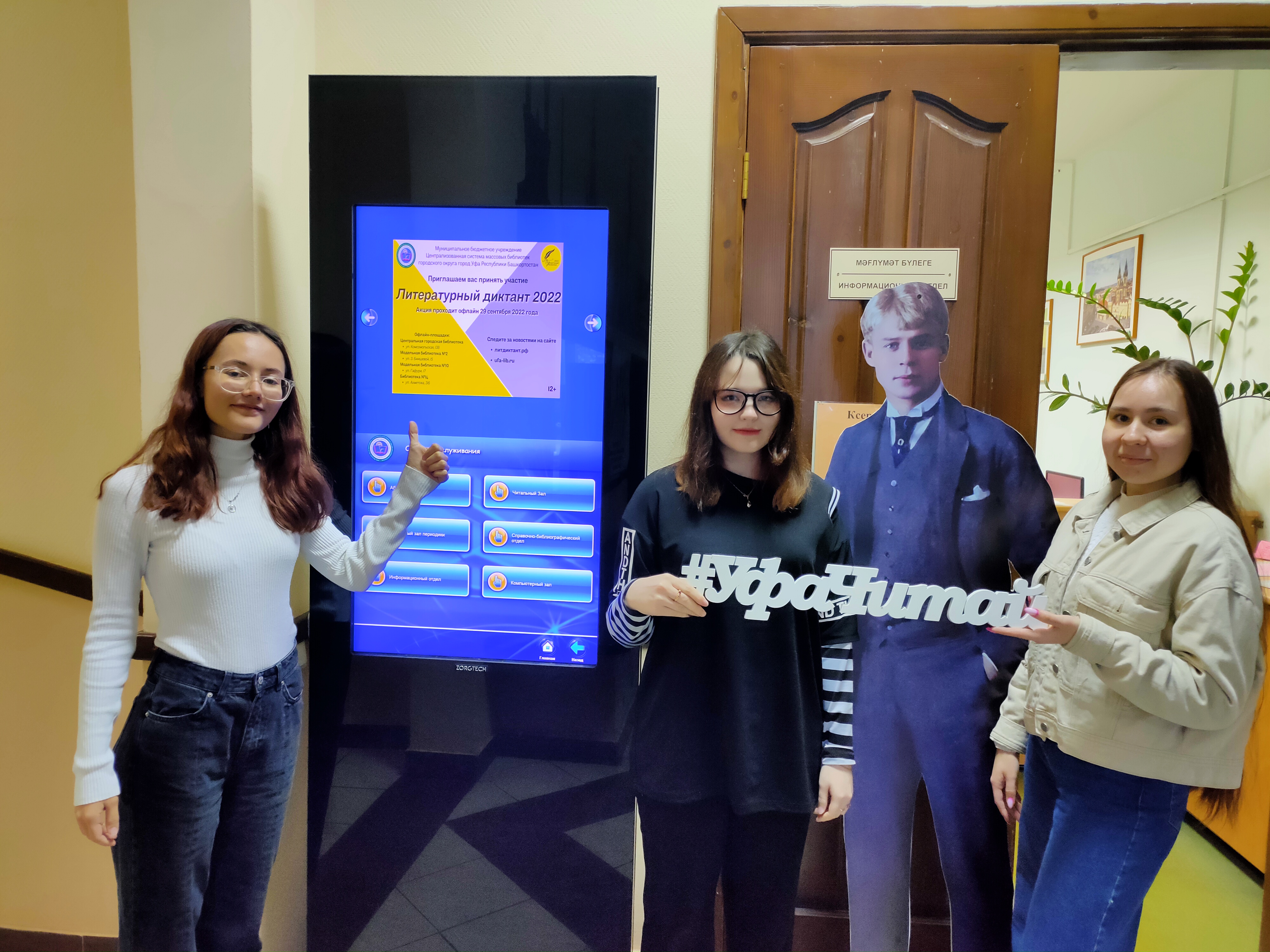 К международной просветительской акции в поддержку русского языка и литературы «Литературный диктант» присоединилась 29 сентября 2022 г. Централизованная система массовых библиотек г. Уфы РБ. 84 жителя Уфы, в их числе учащиеся общеобразовательных школ, студенты СУЗов и читатели, писали в офлайн формате диктант.