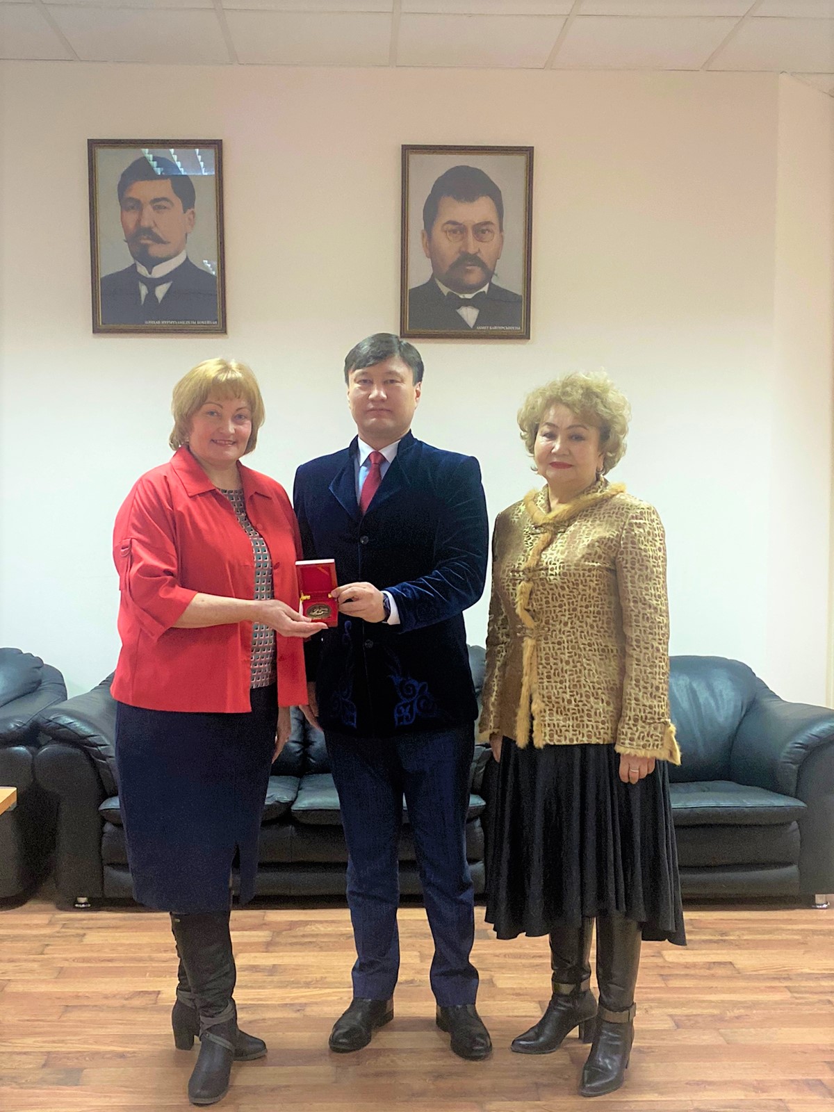 Также в ходе визита Т.А. Буркова была награждена юбилейной медалью ЕНУ им. Л.Н. Гумилева .