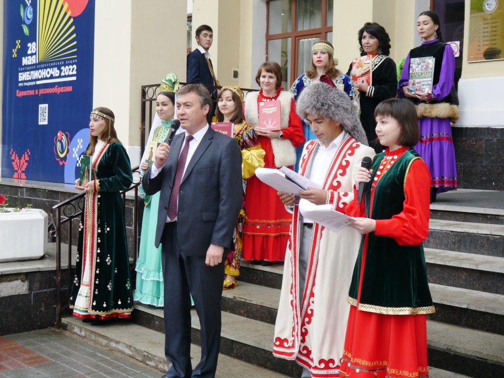 В Доме купца Чижова акция «Библионочь-2022» прошла под девизом «Традиции народов Российской Федерации». Праздник открыл концерт студентов отделения «Инструменты народного оркестра» Уфимского училища искусств (колледжа). Для гостей были организованы всевозможные выставки: книжная выставка «Музыкальная память народов России», выставка-конкурс детского прикладного искусства «Уфа сувенирная», выставка акварельных работ художника-портретиста Алии Кутловой «Башкирские традиции. Возрождение», выставка-презентация народного хозяйства, домашней утвари и некоторых элементов одежды «Исторические предметы быта народов России», выставка работ студентов Башкирского колледжа архитектуры, строительства и коммунального хозяйства «Страны народов мира», презентация Союза армян России в РБ при Доме дружбы народов РБ «В дружной семье народов РБ».