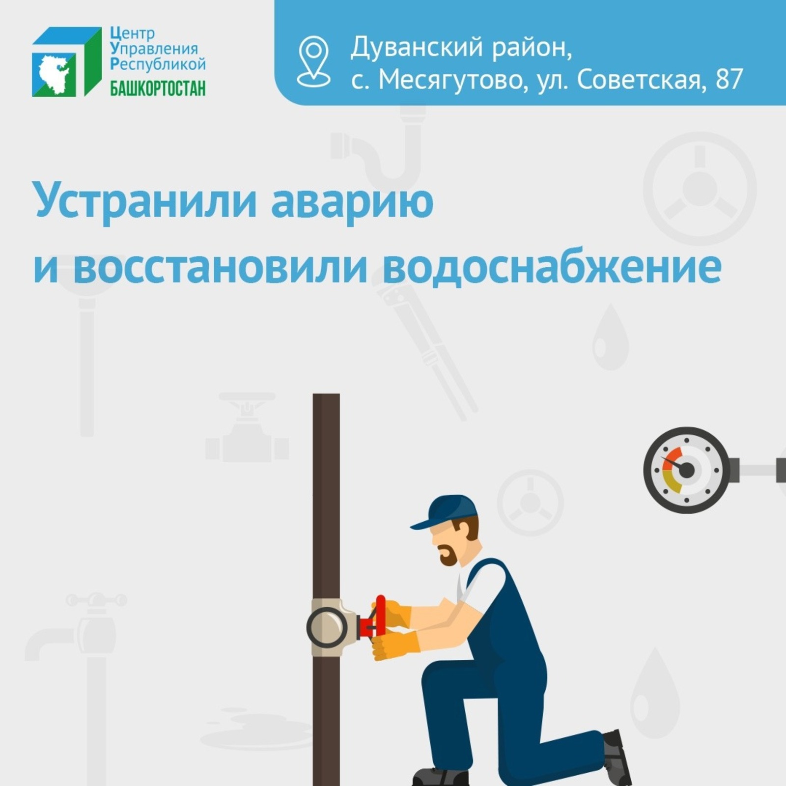 Обращение обеспокоенного жителя в соцсетях передали в администрацию Дуванского района. Оказалось, что трубопровод временно пришлось перекрыть из-за аварии трубопровода по улице Советской, 87, где находится райцентр.