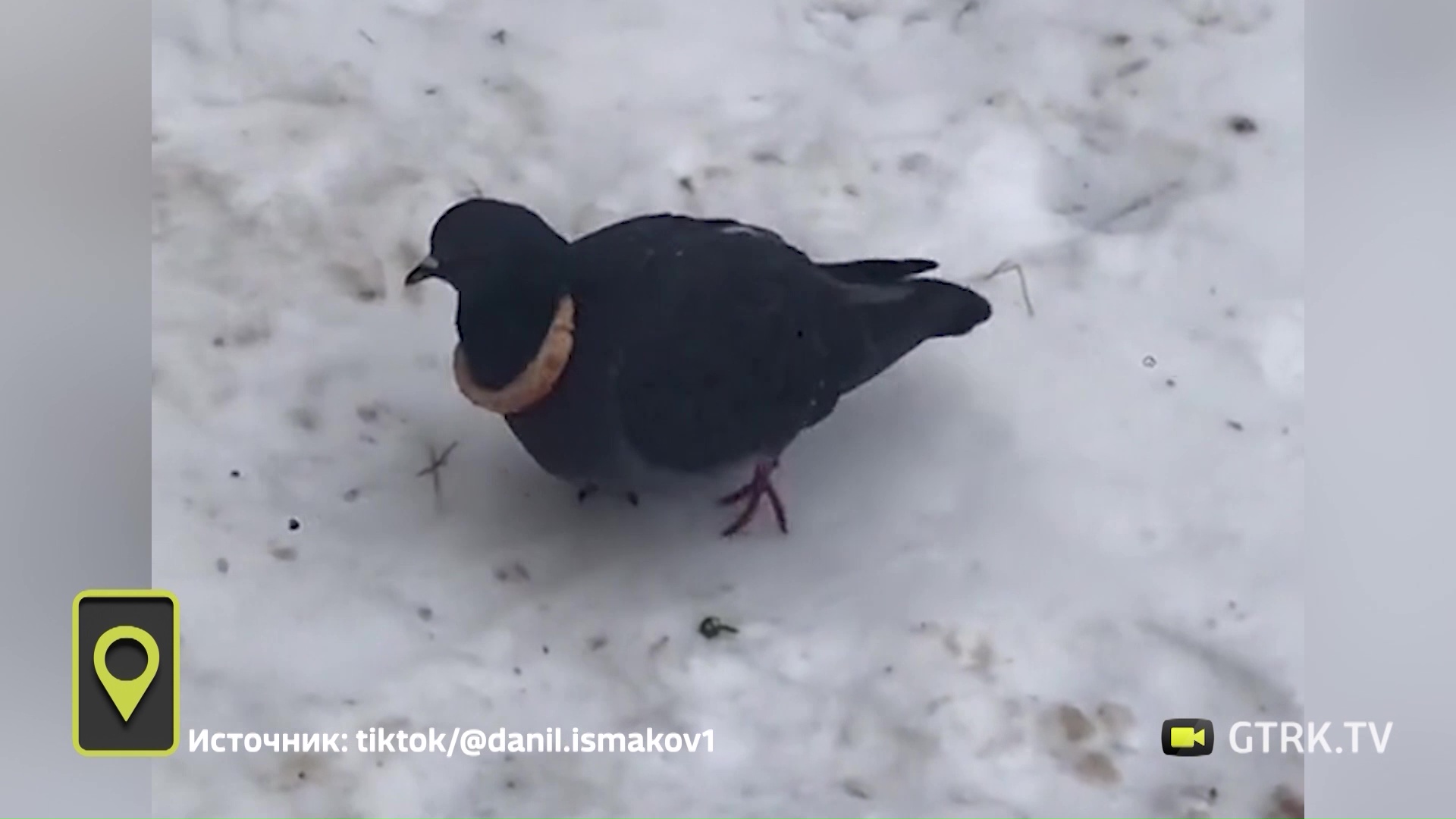 На кадрах, сделанных на улице Мингажева, запечатлена птица, которая точно знает, как выделиться среди своих собратьев. На шее пернатого стиляги ролика красуется хлебная корочка, напоминающая колье, ожерелье или цепочку. Видео позабавило пользователей соцсетей. Некоторые комментаторы выразили беспокойство по поводу того, что другие голуби захотят полакомиться хлебобулочным украшением своего модного собрата.