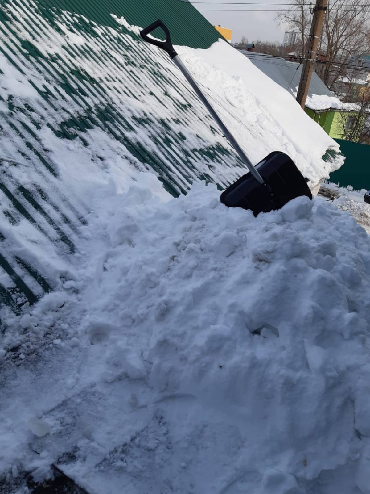 Активист почистил скат крыши и веранды, убрал снег со двора.