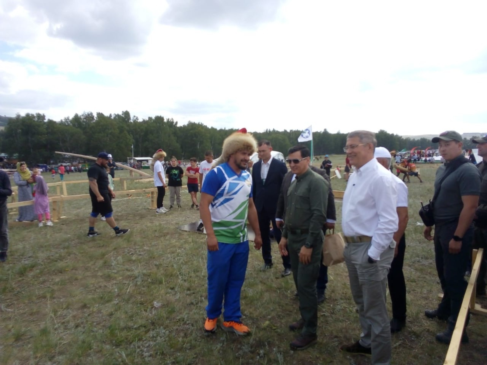 В Баймакском районе главы Калмыкии и Башкортостана произвели символические удары по гонгу в честь открытия фестиваля «Башкорт аты».