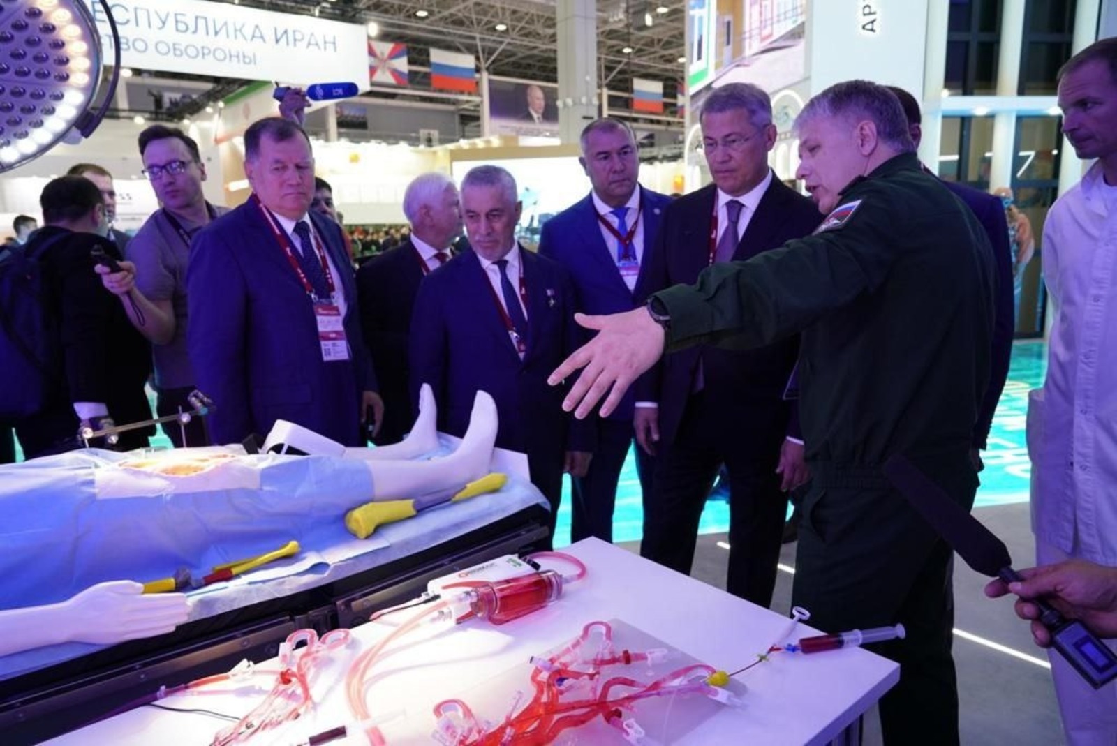 Фото:телеграм-канал Главы Башкирии Радия Хабирова«Нам особенно важен этот форум потому, что во многих изделиях, которые здесь экспонируются, есть элементы, произведенные в Башкортостане. Прежде всего это касается авиации. Отдельный интерес представляет работа военных медиков, которые лечат наших бойцов. Эта сфера сейчас тоже очень хорошо развивается.
