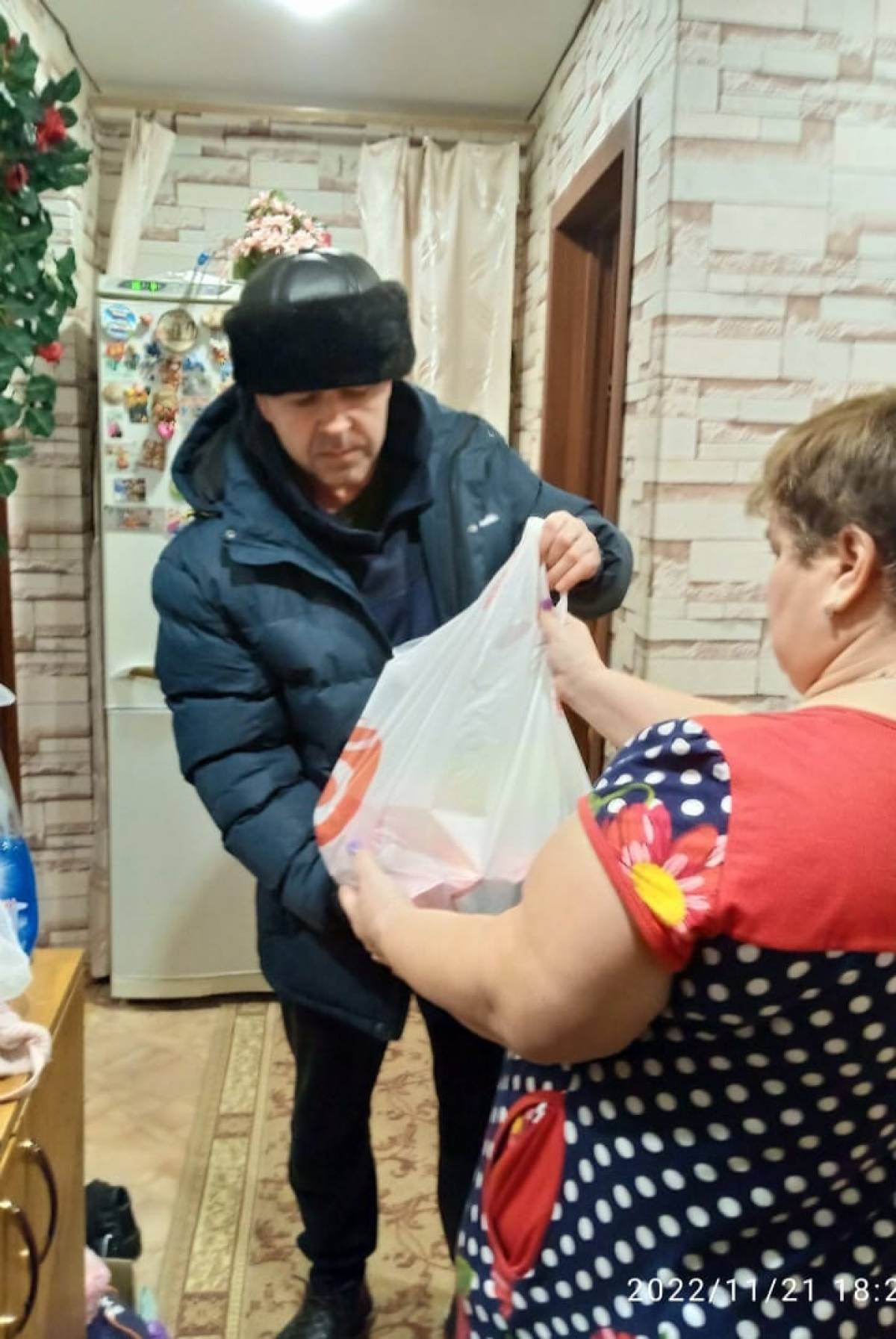 Он приобрел и доставил продуктовый набор супруге мобилизованного.