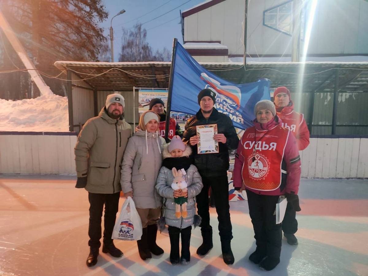 Дети с родителями соревновались в трёх видах испытаний: «Хоккей в валенках», «Ведение теннисного мяча с клюшкой», «Бег с обручем».