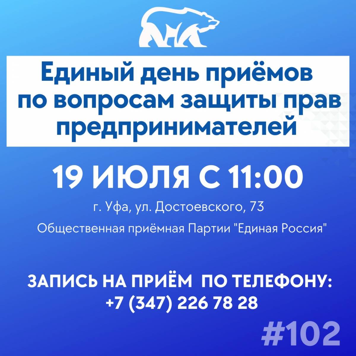 В Общественной приемной партии «Единая Россия» в Уфе пройдет Единый день приема предпринимателей