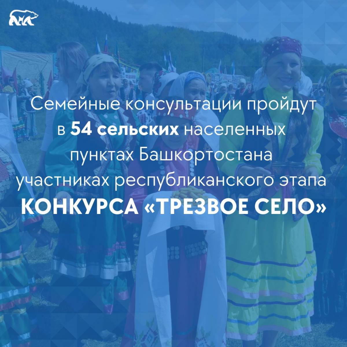 9 февраля с 10:00 до 17:00 часов в Республике Башкортостан в 54 сельских населенных пунктах – участниках республиканского этапа конкурса «Трезвое село» пройдет единый выездной день семейных консультаций.