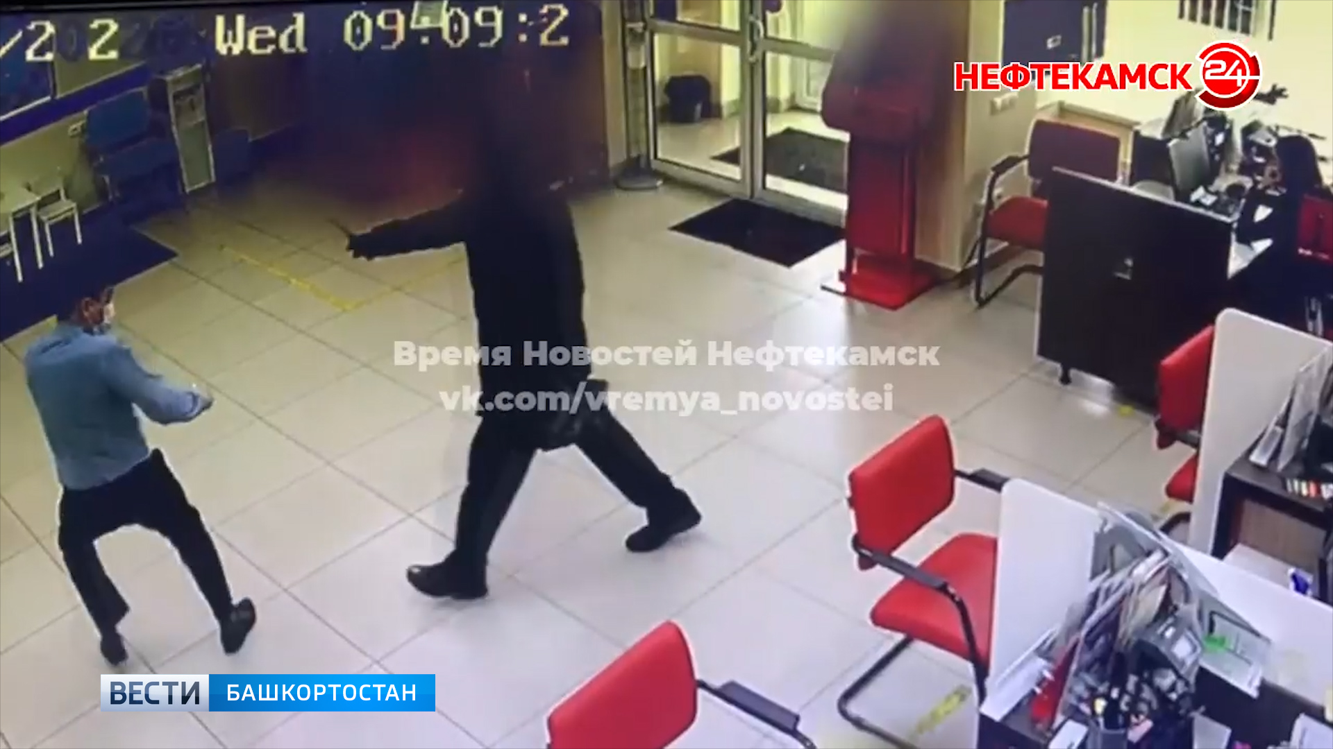 Инцидент произошел сегодня, 30 марта, утром в одном из банков Нефтекамска. Момент нападения зафиксировала камера видеонаблюдения.