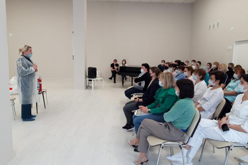 Пожарные акцентировали внимание присутствующих на важности соблюдения правил безопасности при эксплуатации медицинского оборудования, бытовых электроприборов, недопустимость перегрузки электросети и халатного обращения с огнем. Также на мероприятии были разобраны принципы работы таких устройств, как автономные дымовые пожарные извещатели, огнетушители, средства индивидуальной защиты органов дыхания.