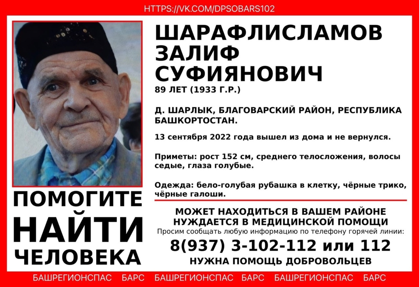В Башкирии разыскивается 89-летний Залиф Шарафлисламов