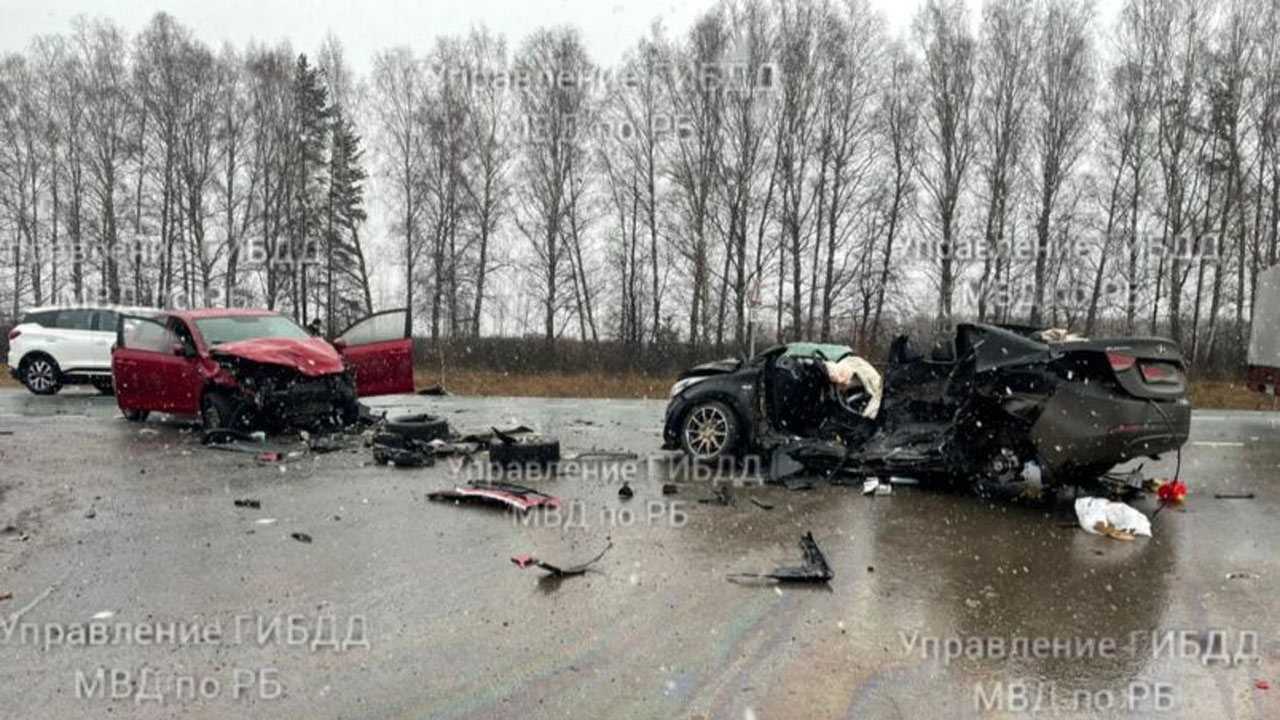 В Бирском районе Башкирии столкнулись 3 автомобиля: один человек погиб, пятеро пострадали