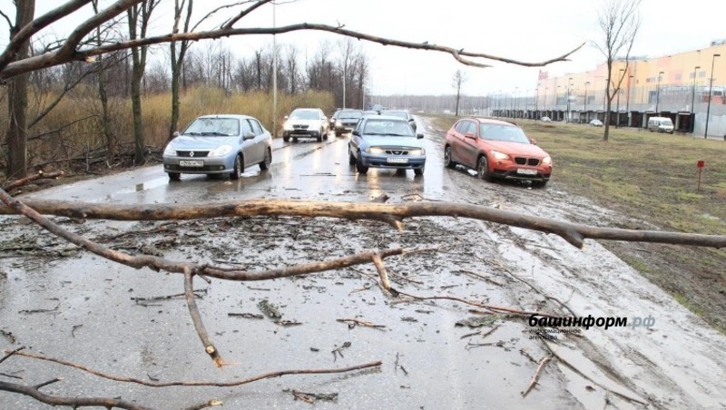 В Уфе из-за ненастной погоды рухнули десять деревьев