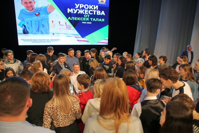 Встреча прошла в формате монолога Алексея Талая о преодолении жизненных трудностей, мотивации на успех и веру в собственные силы на его собственном примере, а также ответов на вопросы собравшихся – школьников и молодежи, в том числе, детей, с ограниченными возможностями здоровья.