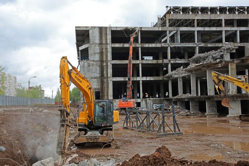 Сегодня, 28 мая, был дан долгожданный старт – на площадку вновь заехала техника и начался демонтаж объекта незавершенного строительства.