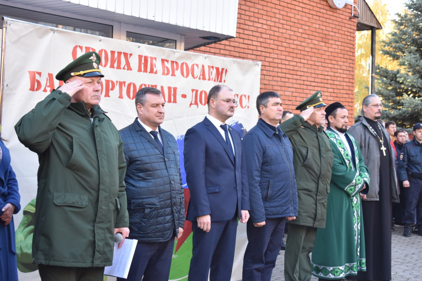 После напутственных слов собравшиеся обменивались объятьями. Отправка автобуса мобилизованных состоялась под марш «Прощание славянки» в исполнении духового оркестра Уфимского юридического института МВД России.