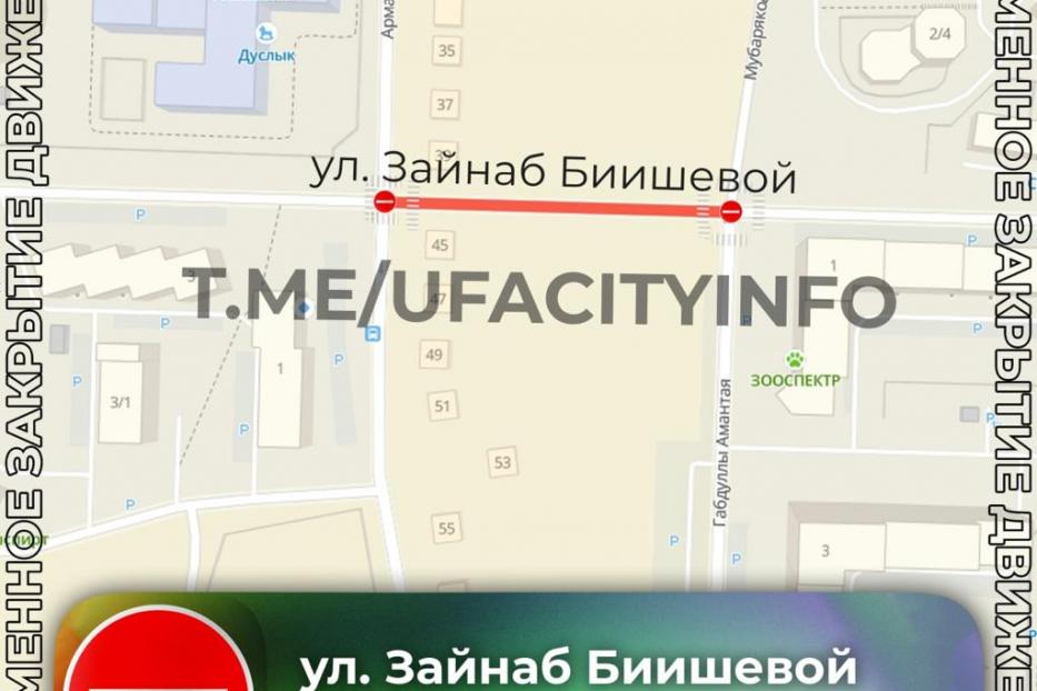 Закрывают движение автотранспорта на участке улицы Зайнаб Биишевой от Армавирской до Мубарякова.